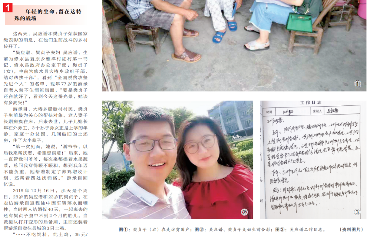 ●今天出版的中国纪检监察报深度关注专栏以《大山深处的扶贫伉俪》为题,追记了“全国脱贫攻坚先进个人”吴应谱、樊贞子夫妇的先进事迹。