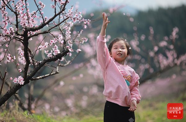 趁着周末好时光走入大自然怀抱,桃花开得正盛,孩子在宜人的风景中感受春光。(浙江省永康市纪委监委供 童文君 摄)
