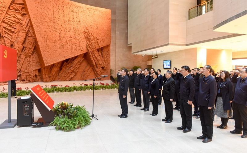 图为省委常委、省纪委书记、省监委主任刘惠带领省纪委监委班子成员等一行重温入党誓词