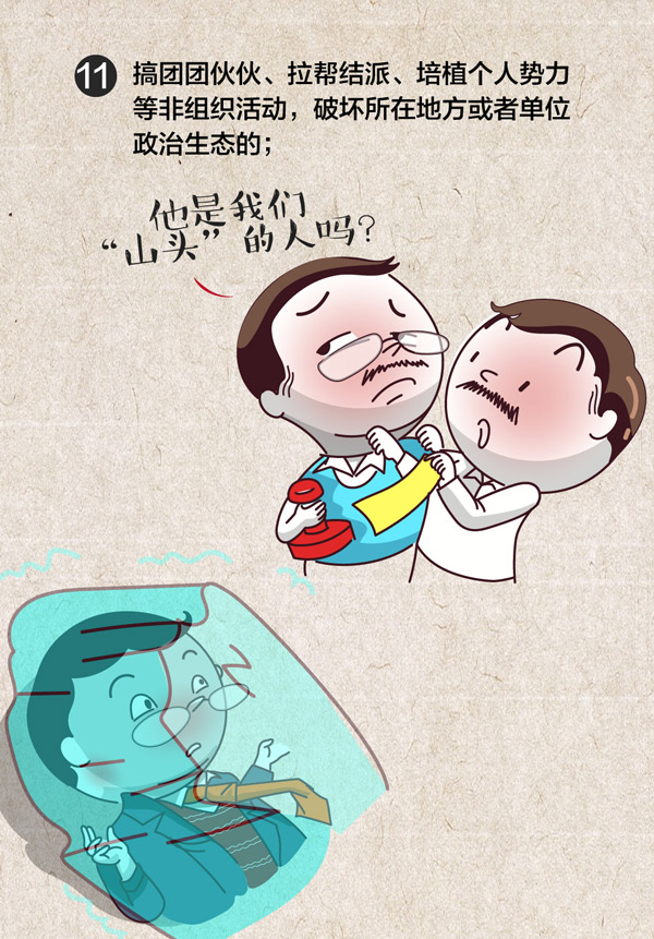 (十一)搞团团伙伙、拉帮结派、培植个人势力等非组织活动,破坏所在地方或者单位政治生态的;