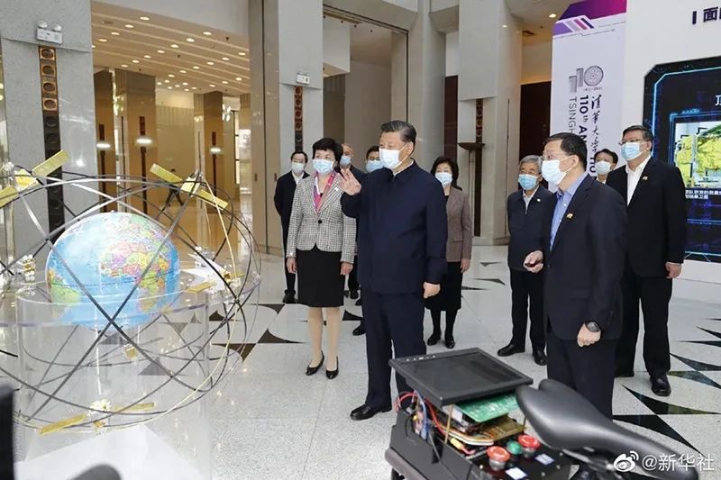 ●在清华大学建校110周年校庆日即将来临之际,习近平总书记来到清华大学考察。
