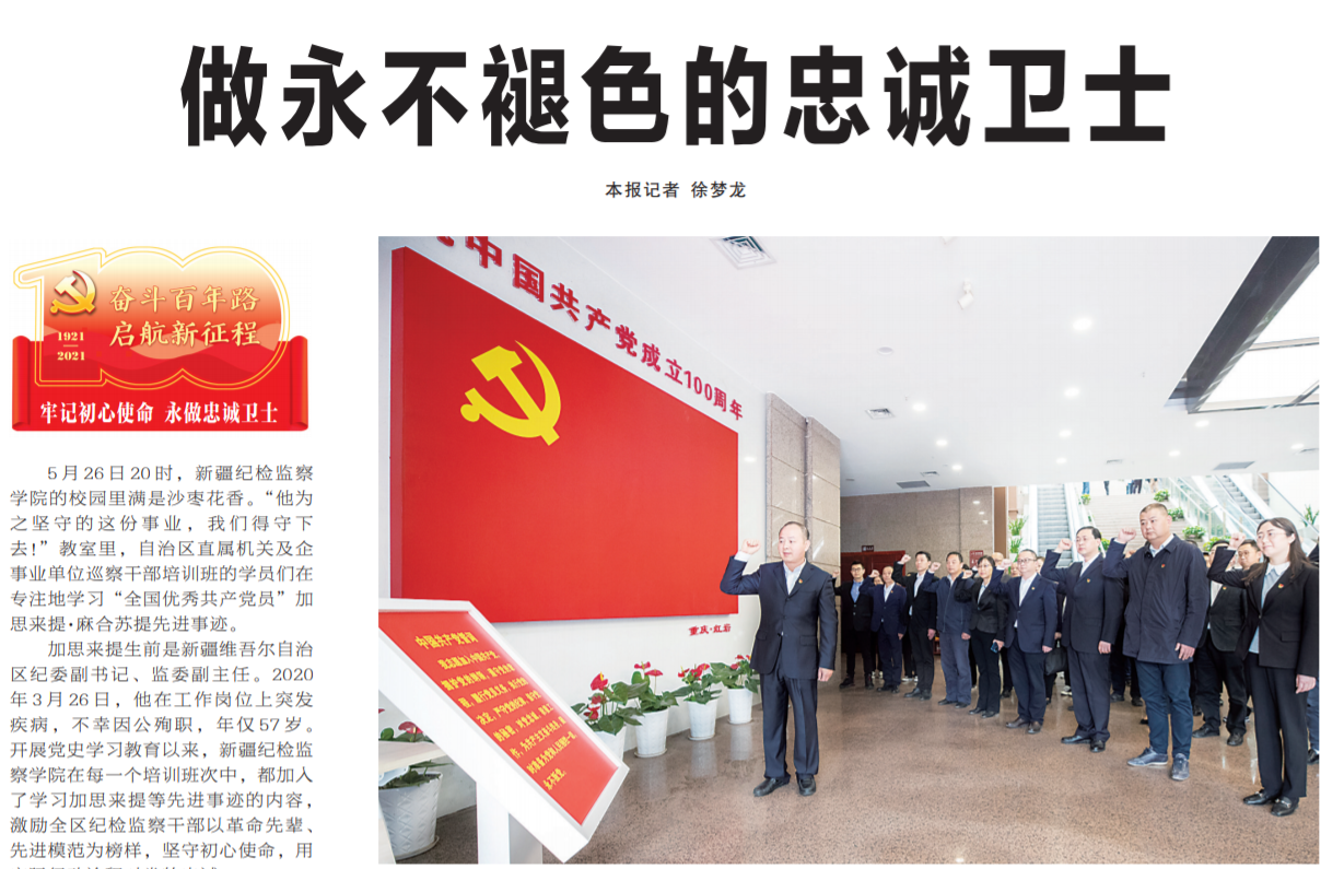 ●今天出版的中国纪检监察报头版头条以《做永不褪色的忠诚卫士》为题,报道了新疆维吾尔自治区纪委副书记、监委副主任加思来提等几代纪检监察干部的先进事迹。文章指出:纪检监察机关和广大纪检监察干部要以革命先辈、先进模范为榜样,传承对党绝对忠诚的红色基因。