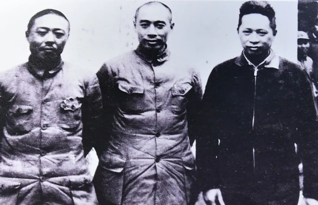 项英、周恩来、叶挺(从左往右)在军部合影