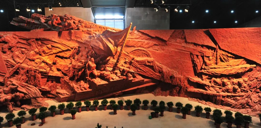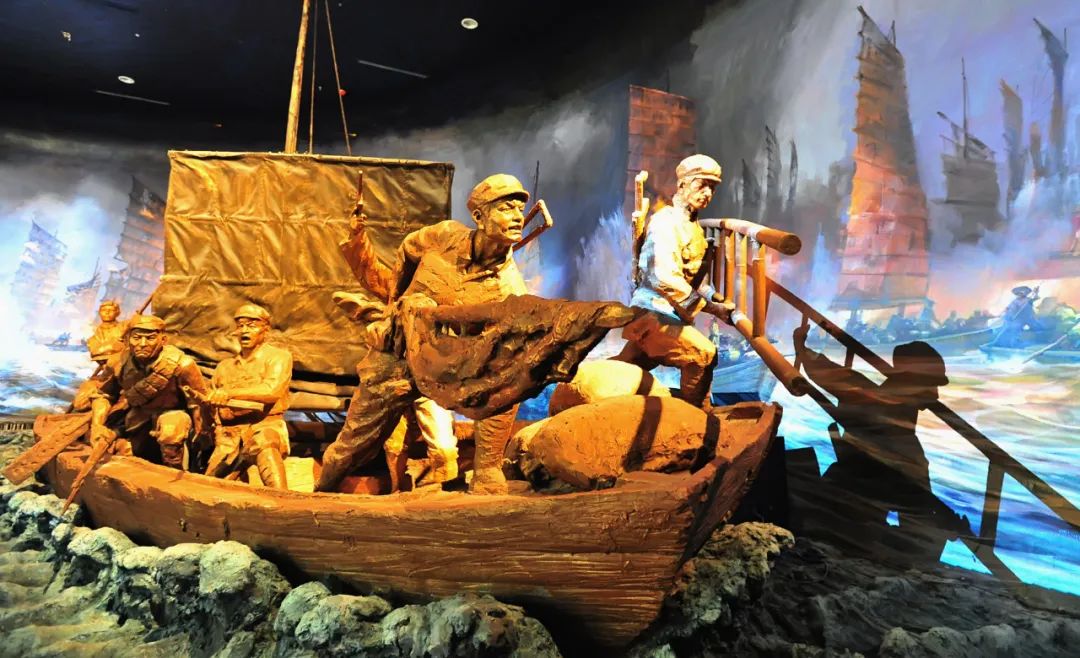 合肥渡江战役纪念馆里的反映渡江战争场面的雕塑。