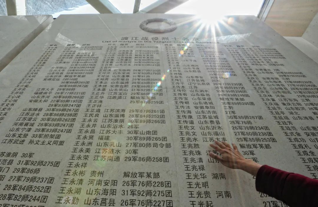 合肥渡江战役纪念馆里的烈士名录墙。