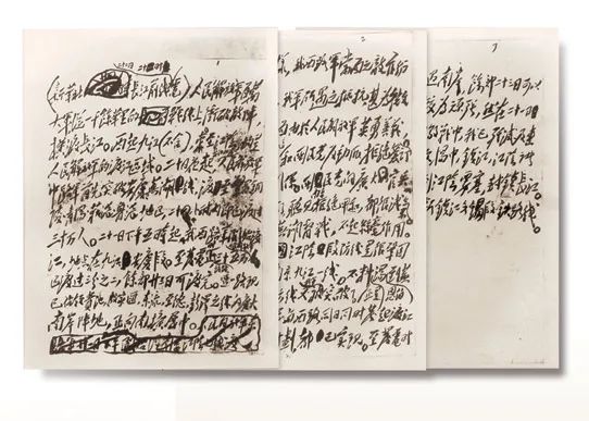 毛泽东为新华社撰写的消息《人民解放军百万大军横渡长江》手稿(资料图片,来源为中国记协)