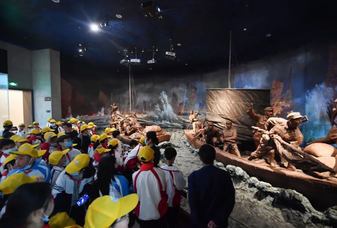 合肥渡江战役纪念馆,游客参观学习渡江战役历史,缅怀革命先烈丰功伟绩。