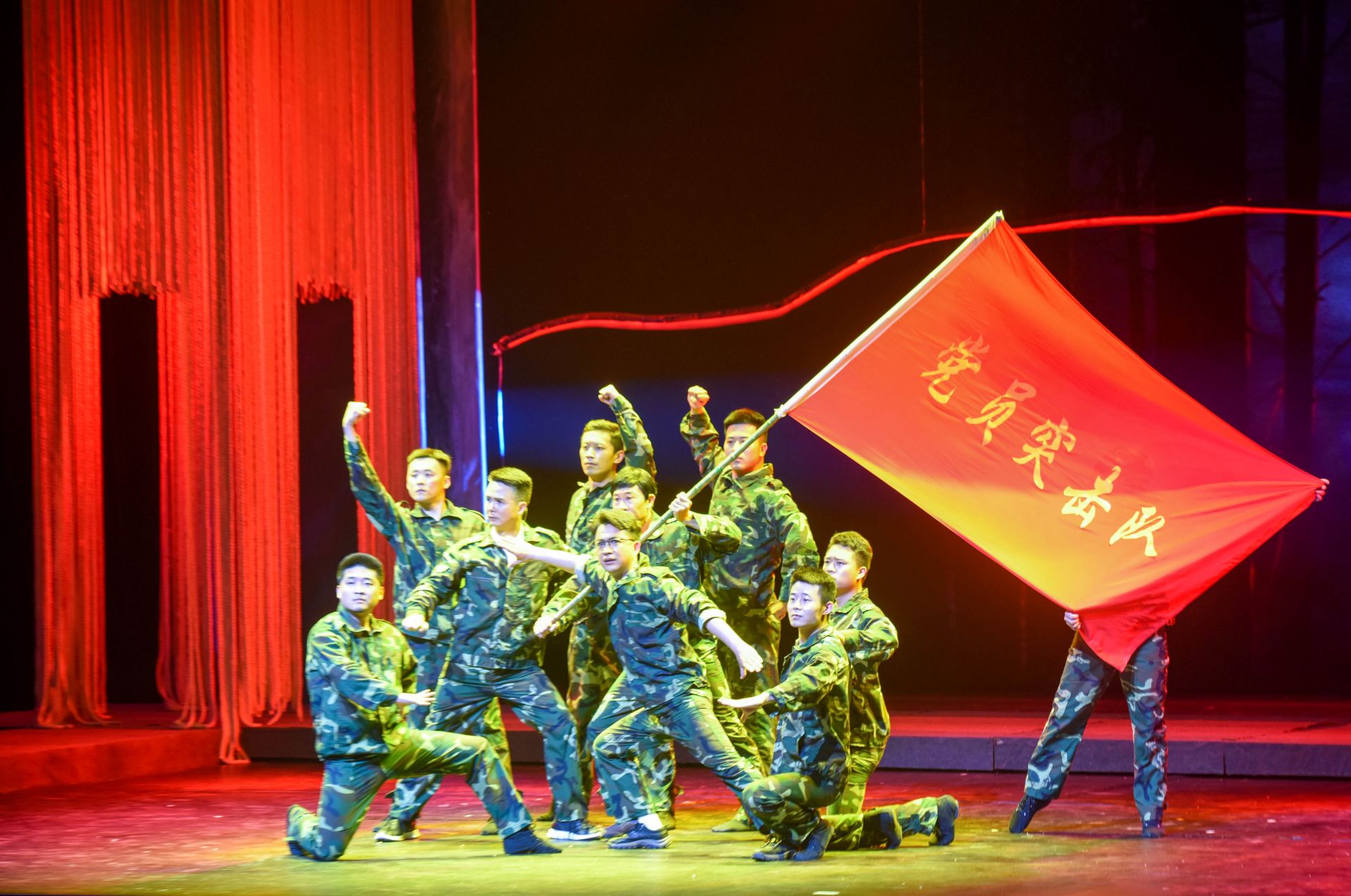 图为歌颂时代楷模李夏同志大型黄梅戏《初心》现场剧照