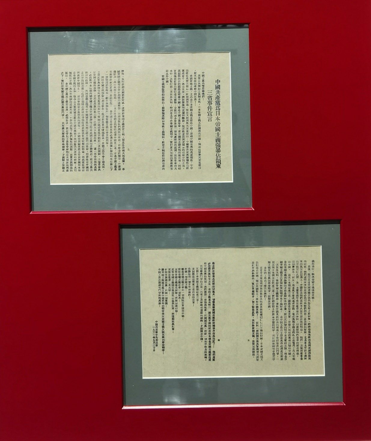 图为中共中央发表的《中国共产党为日本帝国主义强暴占领东三省事件宣言》。黄秋霞摄