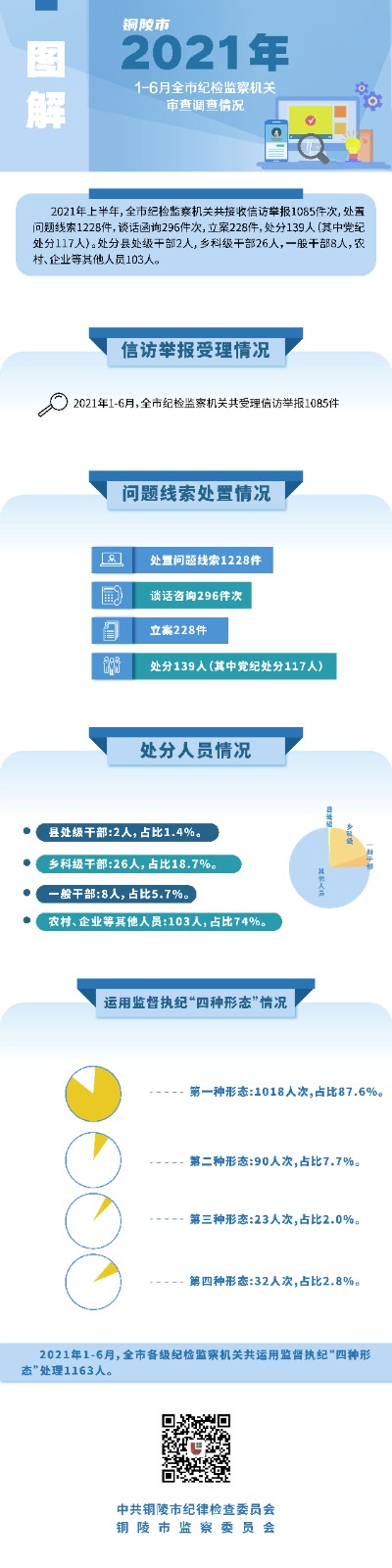 铜陵:图解2021年1—6月全市纪检监察机关审查调查情况