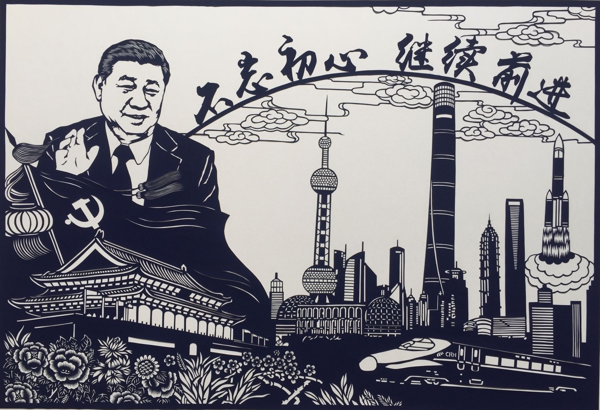 【平面公益广告】不忘初心 继续前进(剪纸)