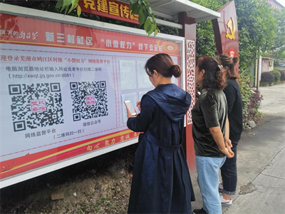 (群众通过“小微权力”线下公示栏和扫描二维码查看事项)