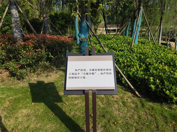园中各处点缀着领袖的廉政语录,提醒党员干部廉洁自律、率先垂范。