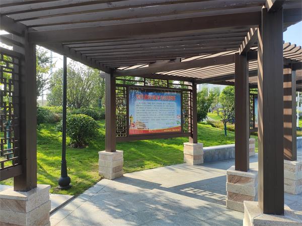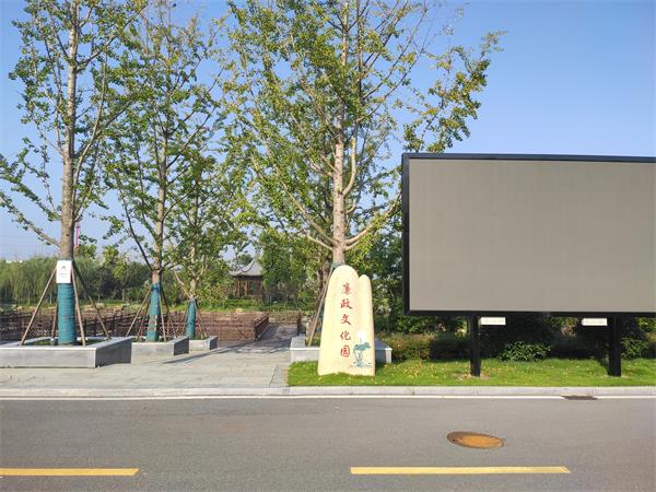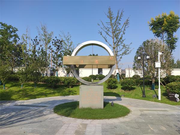 廉政文化园入口,栽种着十二棵高大挺拔的银杏树,寓意为官者要刚正不阿、风骨清正。