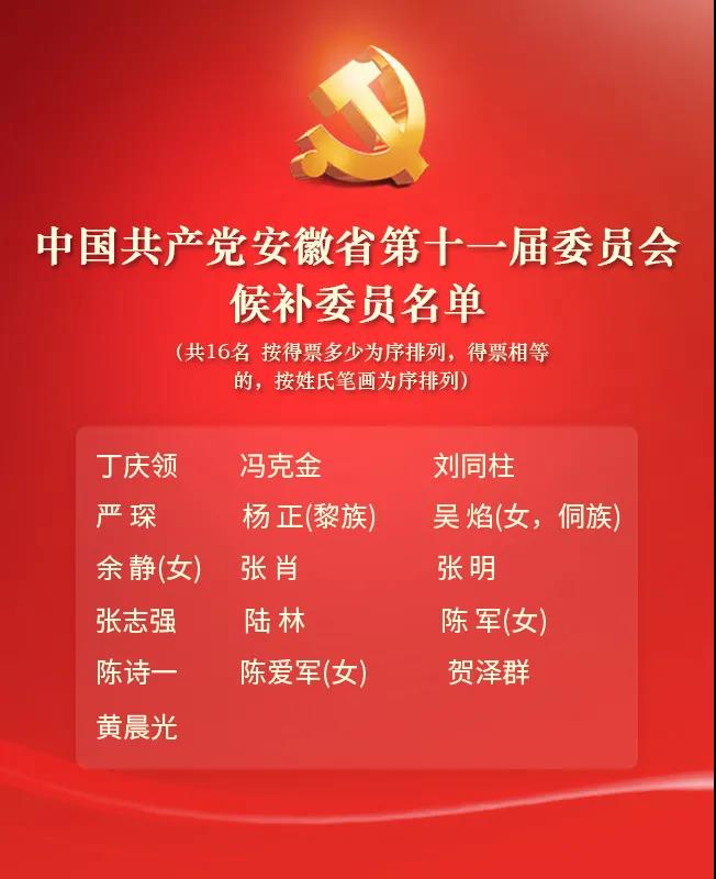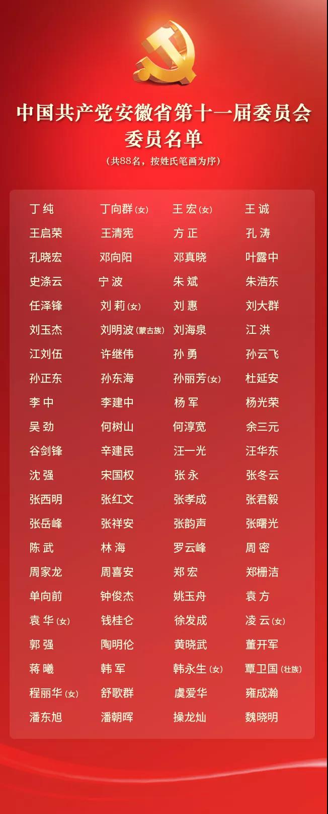 ● 中国共产党安徽省第十一届委员会委员、候补委员名单