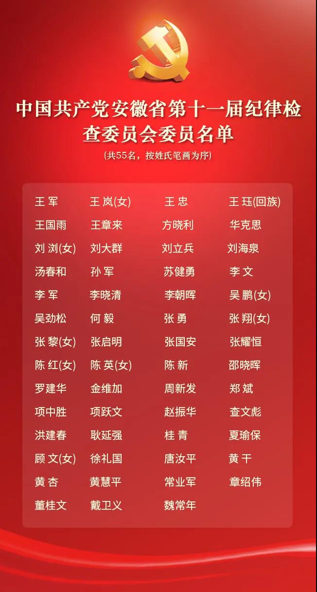 ● 中国共产党安徽省第十一届纪律检查委员会委员名单