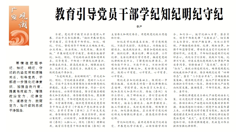 ● 今天出版的中国纪检监察报广安观潮专栏发表评论《把党纪学习教育与群众身边不正之风和腐败问题集中整治有机结合》指出:各级纪检监察机关要把党纪学习教育与群众身边不正之风和腐败问题集中整治有机结合,下大气力惩治“蝇贪蚁腐”,切实解决群众急难愁盼问题,推动党员干部增强服务群众意识、提高群众工作能力,把党中央惠民富民好政策落到实处。