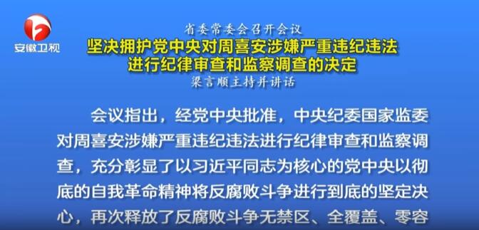 省委常委会召开会议 坚决拥护党中央对周喜安涉嫌严重违纪违法进行纪律审查和监察调查的决定 梁言顺主持并讲话
