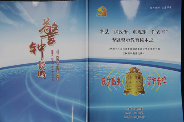 庐江县通过印发《身边的警示》一书,敲响身边的警钟,以一本书警醒一片人,在广大党员干部心里扎起一道“纪律篱笆”,提醒党员干部要遵纪守法、洁身自好,促进党风廉政建设和反腐败工作深入开展。(合肥市纪委)