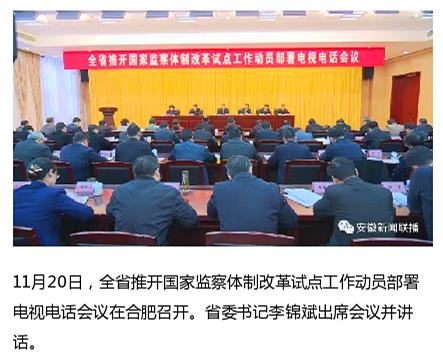 11月20日,省委召开全省推开国家监察体制改革试点工作动员部署电视电话会议,部署全省深化监察体制改革试点工作,强调坚决按照中央统一部署要求,确保在今年12月10日前,全省县级要完成转隶工作,12月召开人代会产生监察委员会、完成挂牌;12月31日前,市级要完成转隶工作,明年1月上旬召开人代会产生监察委员会、完成挂牌;明年1月底前完成省市县三级监察委员会组建工作,任命监察委员会组成人员。