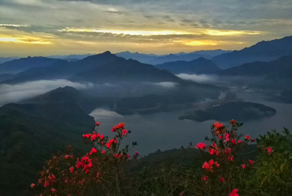 天清水净,日影西斜,暮色四合,渔舟晚唱。残阳欲坠,为晚云描出一线黛红,余晖映水,向湖面铺开一片亮金。