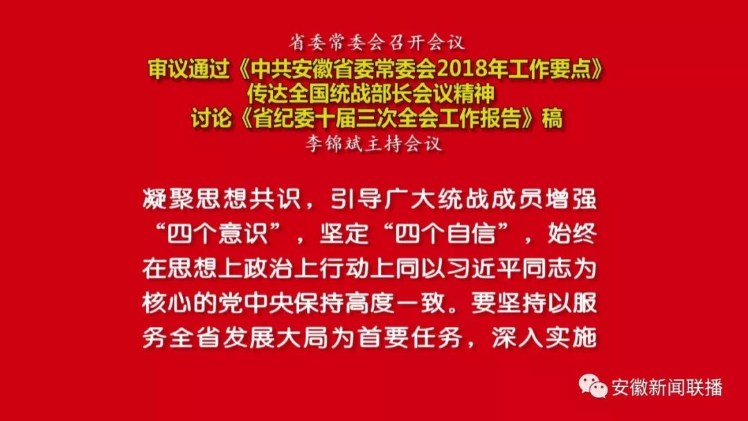 安徽省委书记、省人大常委会主任李锦斌出席并讲话;省委副书记、省长李国英等到会祝贺;张昌尔主持并讲话;张学平作中国人民政治协商会议第十一届安徽省委员会常务委员会工作报告;牛立文作关于提案工作情况的报告。(记者 彭旖旎)