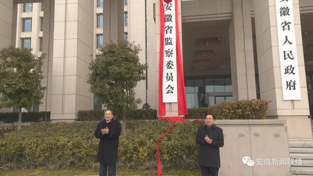 安徽省委书记李锦斌和安徽省委常委、省纪委书记、省监察委员会主任刘惠共同为安徽省监察委员会揭牌(徐国康 摄)