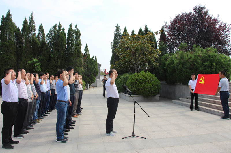 在岩寺新四军军部旧址纪念馆广场,各党员干部面朝新四军六将领雕像在广场中央肃立,奏唱国歌,敬献花篮,集体深深三鞠躬,表达了对革命先辈的深切缅怀和无限敬仰。面对鲜艳的中国共产党党旗,在县委书记领誓下,全体同志一起重温入党誓词,表达了县委“不忘初心、牢记使命”的坚定政治信仰。宣誓仪式后,全体同志一同参观岩寺新四军军部旧址及纪念馆,驻足观看陈列展品,认真聆听现场讲解,进一步接受深刻的革命教育和精神洗礼。