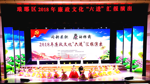 12月20日下午,以“同耕共织 廉动你我”为主题的琅琊区廉政文化汇报演出在滁州大剧院举行。这次汇报演出以歌舞《我们的新时代》为开篇,以大合唱《我宣誓》为压轴,既有反映机关干部过硬作风的朗诵,又有孩子们自编自导的廉政黄梅戏,还有社区居民自排自演的廉政快板,更有传诵优良家训家风感人家书,宣传了习近平新时代中国特色社会主义思想,弘扬了中华传统优秀文化,展现了该区廉政文化建设“以文化人,以廉固本”取得的累累硕果,擦亮了廉政文化特色品牌。全区1200多名干部群众现场观看演出,接受廉政文化教育、熏陶和浸润。该区廉政文化演出已连续举办四届。